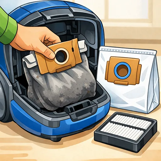 یک نکته مهم دیگر هم بهداشت است. کیسه پر از گرد و غبار، مو، پرز و ذرات ریز می تواند باعث پخش بوی نامطبوع شود یا در افراد حساس، علائم آلرژی و مشکلات تنفسی را تشدید کند. پس تعویض کیسه فقط برای عملکرد بهتر نیست؛ برای هوای سالم تر خانه هم هست.